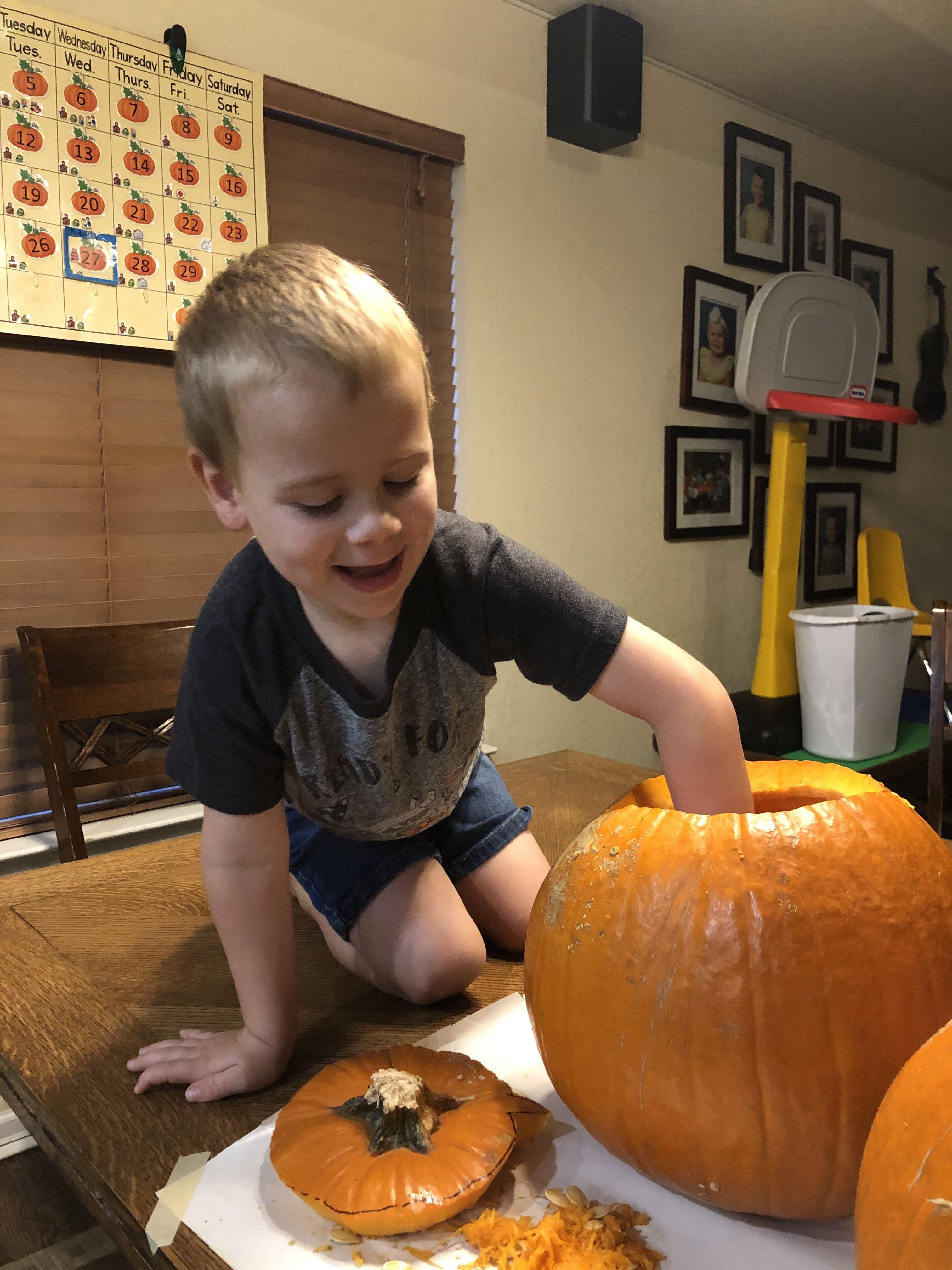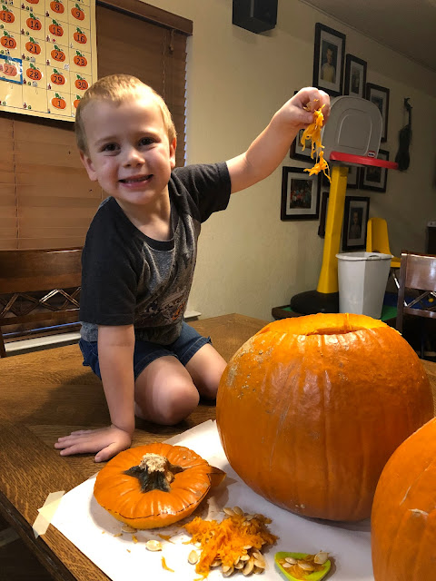 Today was pumpkin carving day! This morning I helped Caleb and Emma carve their pumpkins. Then I went to the elementary school where I helped a small group in Isaac's class carve a pumpkin. And Caleb carved a pumpkin at school. That afternoon I helped Conner and Isaac carve their pumpkins! Whew!